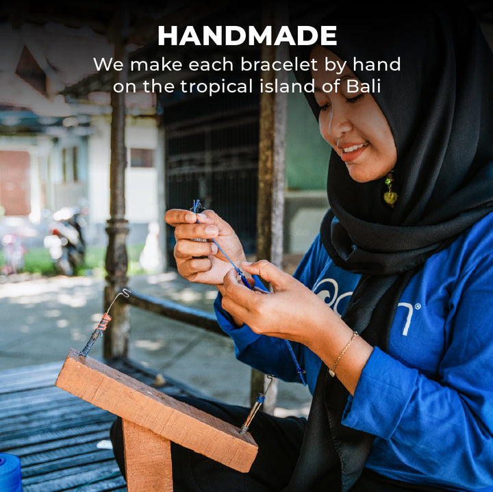 Materials: 100% recycled 4ocean Plastic cord; 100% recycled stainless steel charms; 95% post-consumer recycled glass beads (silica added for strength and durability)