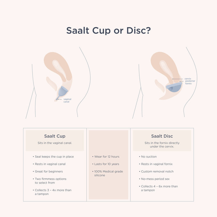 The Saalt Cup is thoughtfully designed for both comfort and ease of use, making it an ideal choice for first-time users. Its slightly firmer medical-grade silicone allows it to open smoothly and seal securely for leak-free protection.