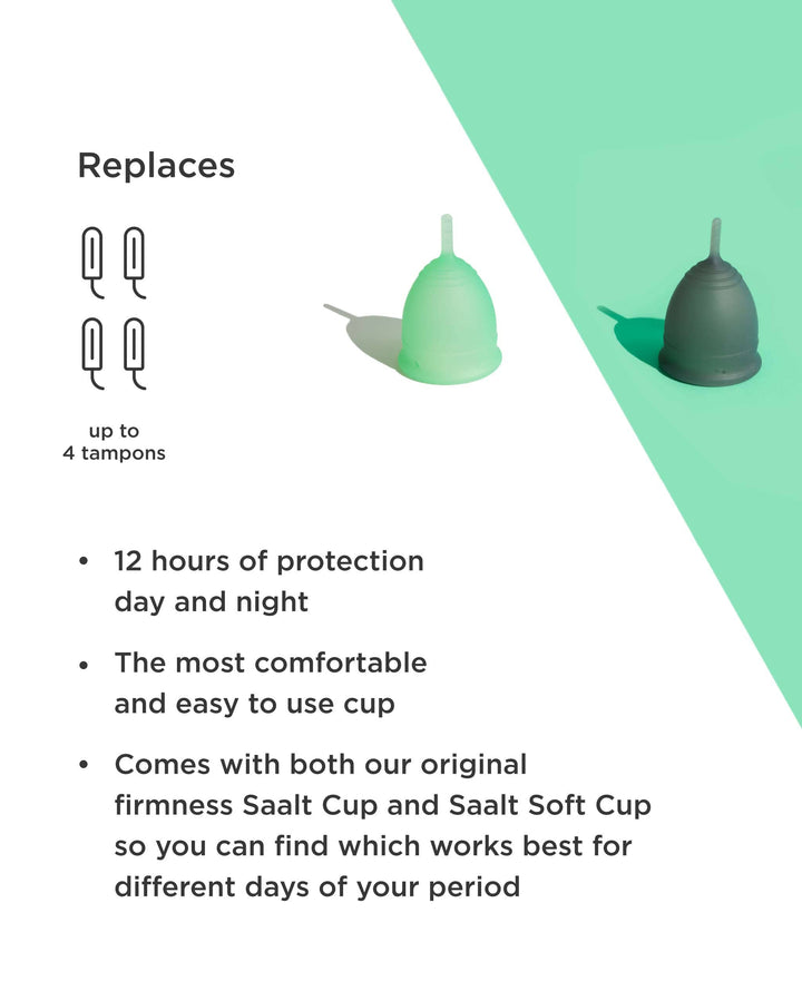 • Includes both the Saalt Cup (Original) and the Saalt Soft Cup