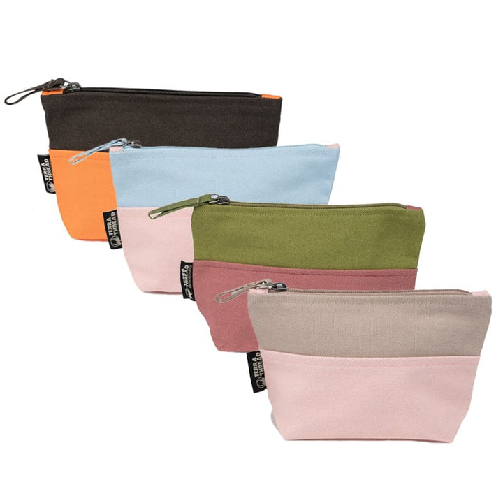 Designed for durability and longevity. At the end of its life, the pouch can be repurposed or recycled through textile recycling facilities. The all-natural cotton composition supports biodegradability in appropriate composting conditions, minus the zipper component.